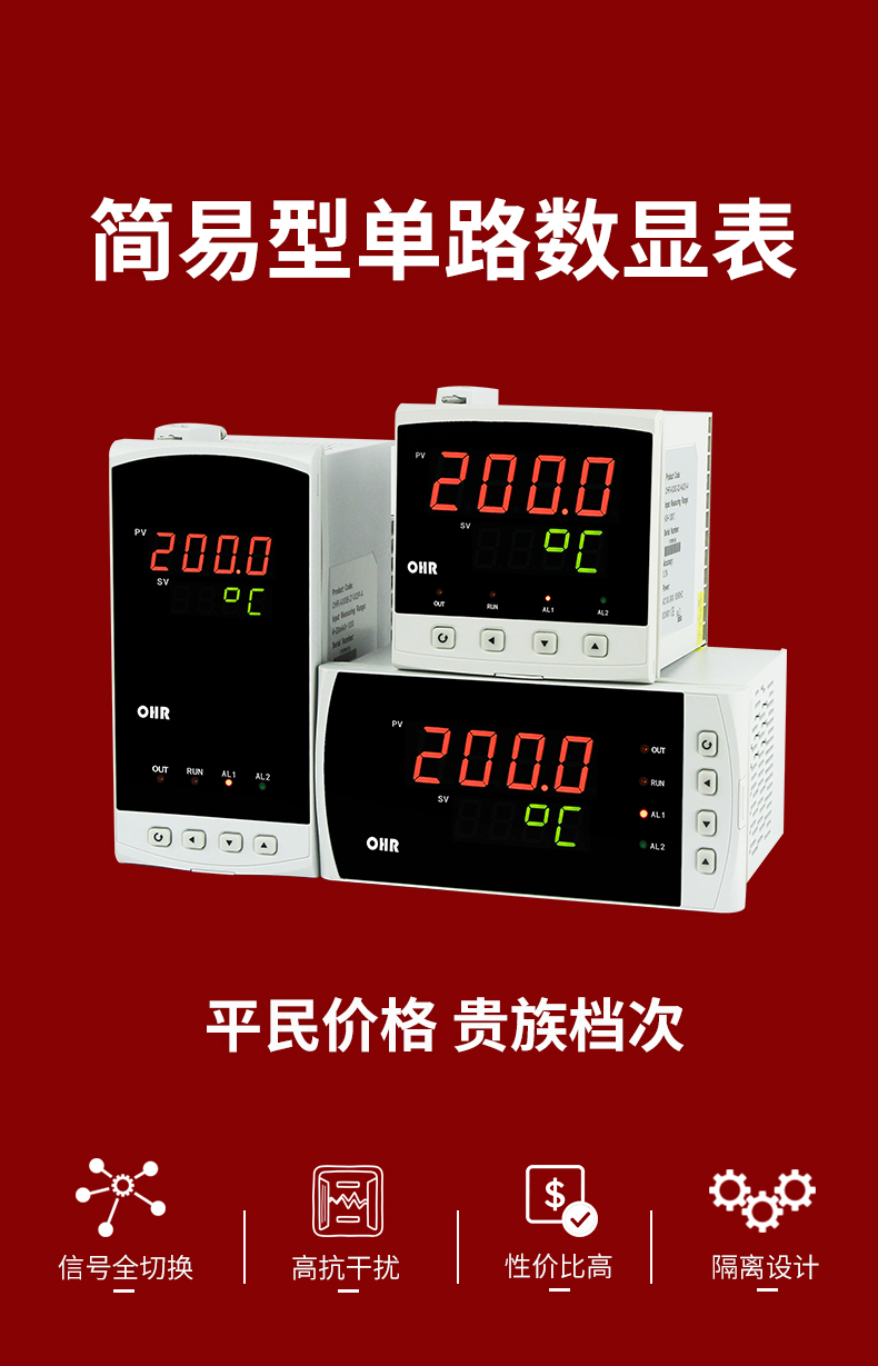 OHR-A100/A104系列簡易型單回路顯示控制儀采用模塊化結構,結構簡單、操作方便、性價比高,適用于塑料、食品、包裝機械等行業。