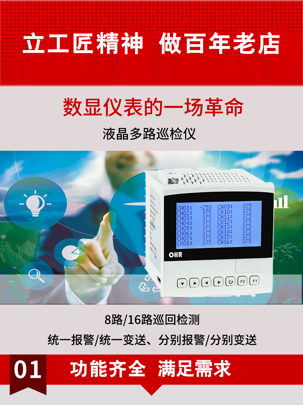 OHR-G700系列液晶多回路測量顯示控制儀針對現場溫度、壓力、液位、速度等各種信號進行采集、顯示、控制、遠傳、通訊、打印等處理。
