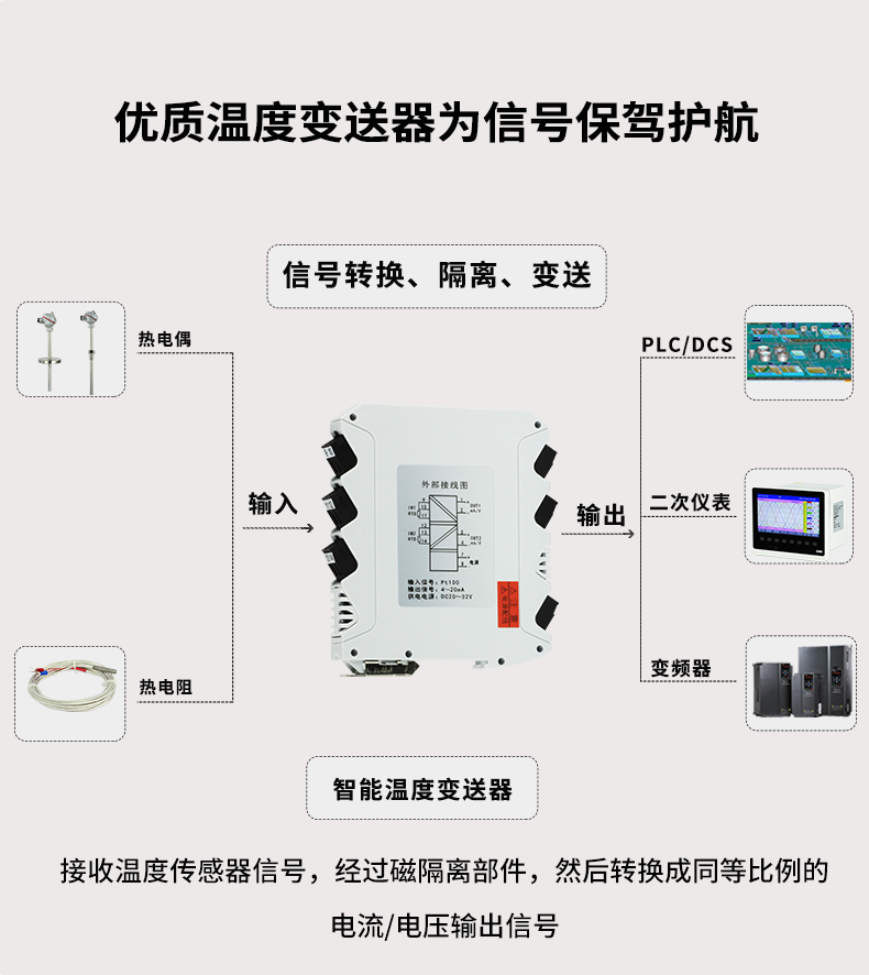 OHR-M22系列智能溫度變送器將現(xiàn)場的熱電阻或熱電偶信號經(jīng)過隔離放大處理,轉(zhuǎn)換為與溫度成線性的直流信號輸出至控制系統(tǒng),用作熱電偶溫度變送時,具有冷端溫度自動補償功能。