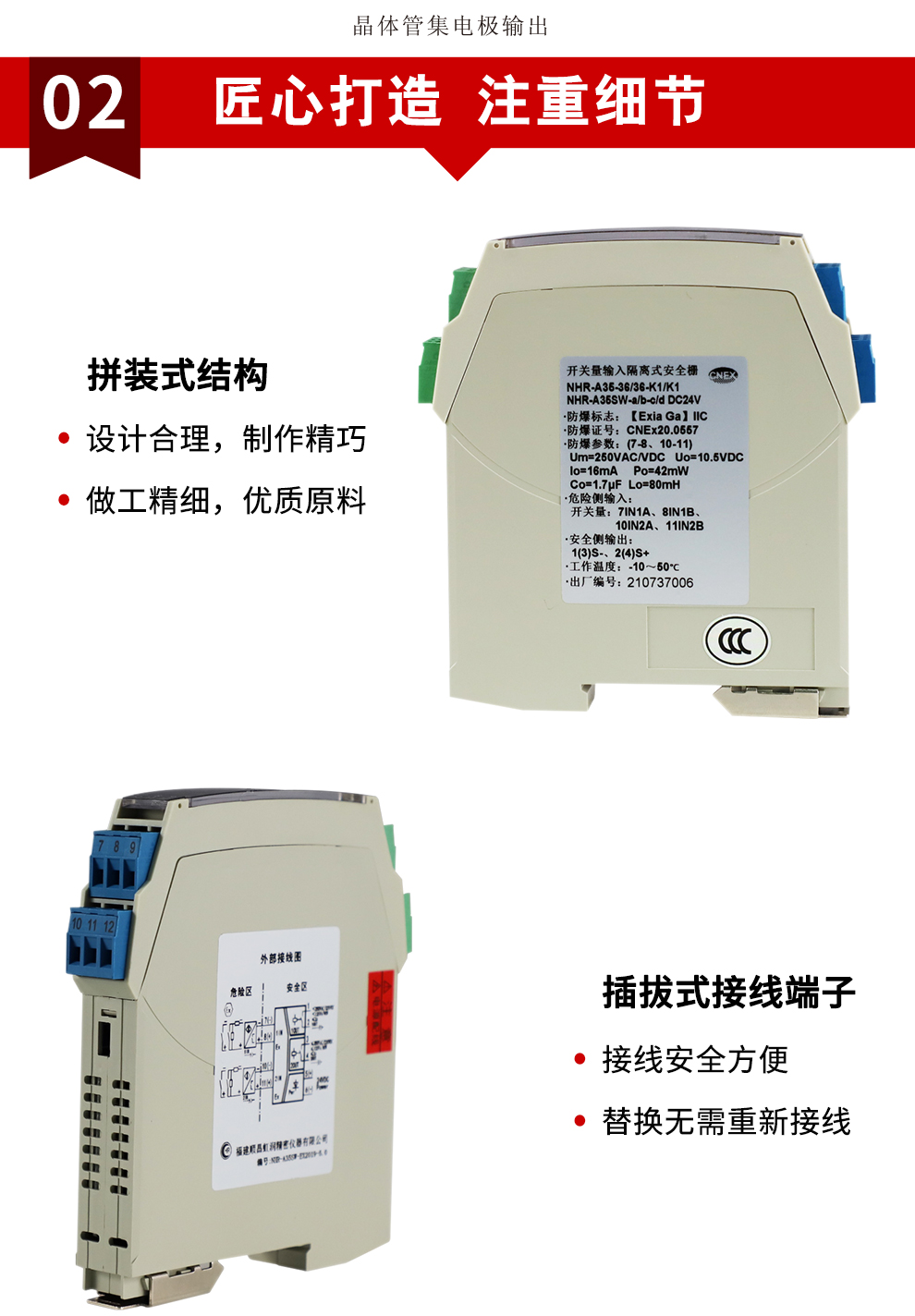 OHR-A35系列開關量輸入檢測端隔離柵接受來自危險區的開關或接近開關輸入,通過安全柵隔離輸出到安全側的繼電器或晶體管輸出,它具有輸入狀態檢測指示,可進行正反向控制,該產品需獨立供電,輸入/輸出/電源三隔離。