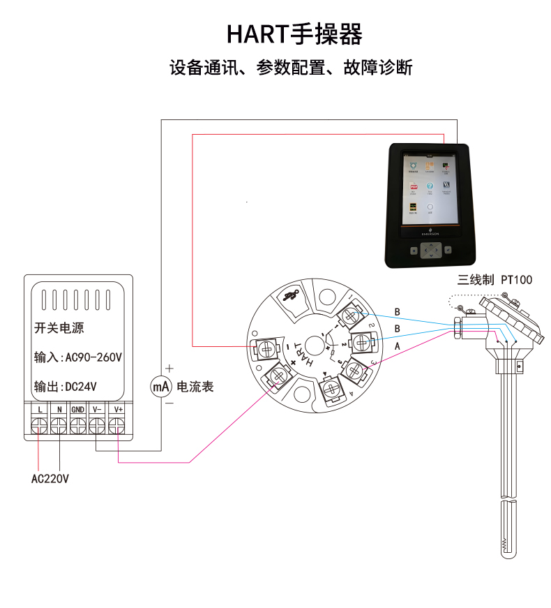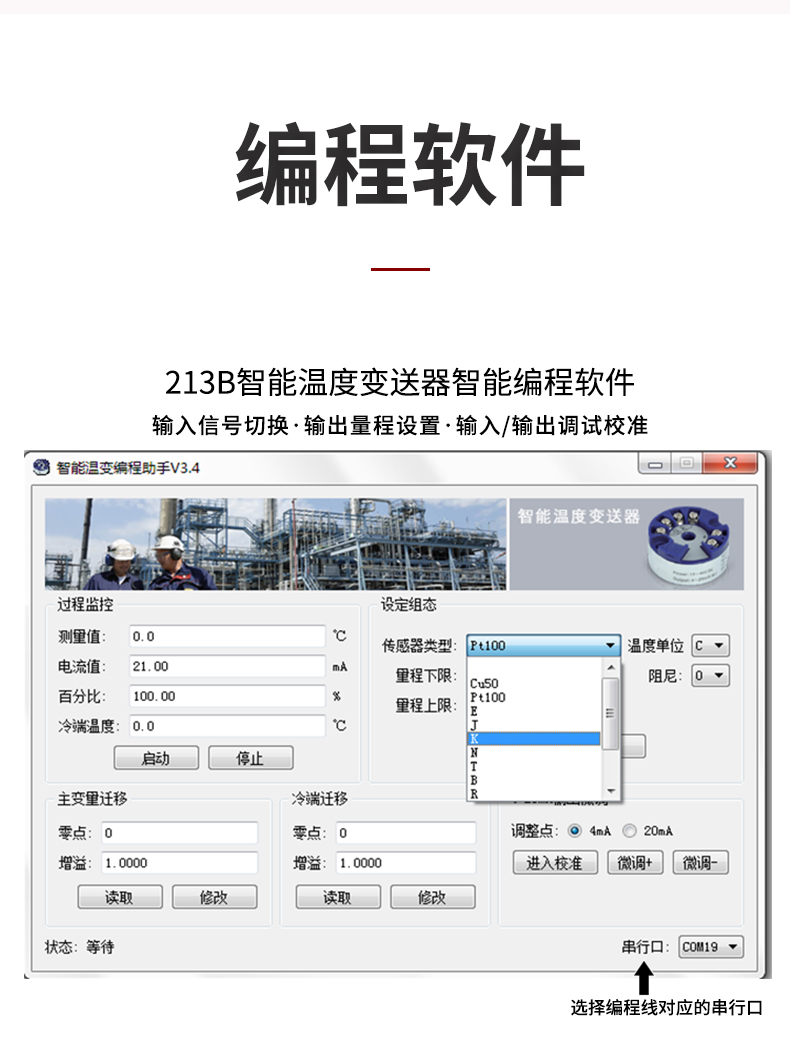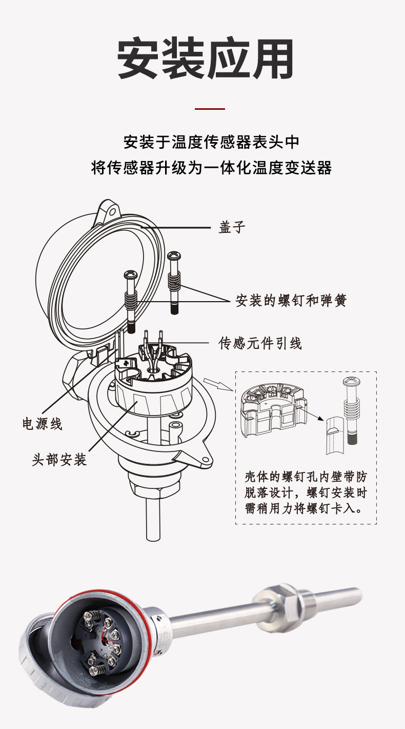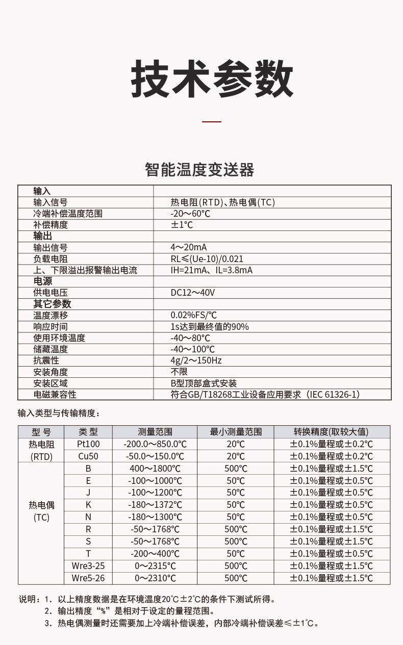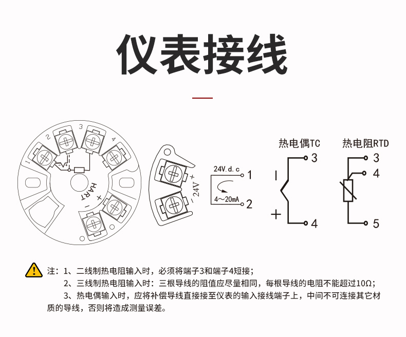 HART智能溫度變送器(圓卡),用于熱電阻(RTD)、熱電偶(TC)信號輸入,二線制4~20mA模擬輸出,通過HART協議組態,安裝于傳感器內部(Form B)。