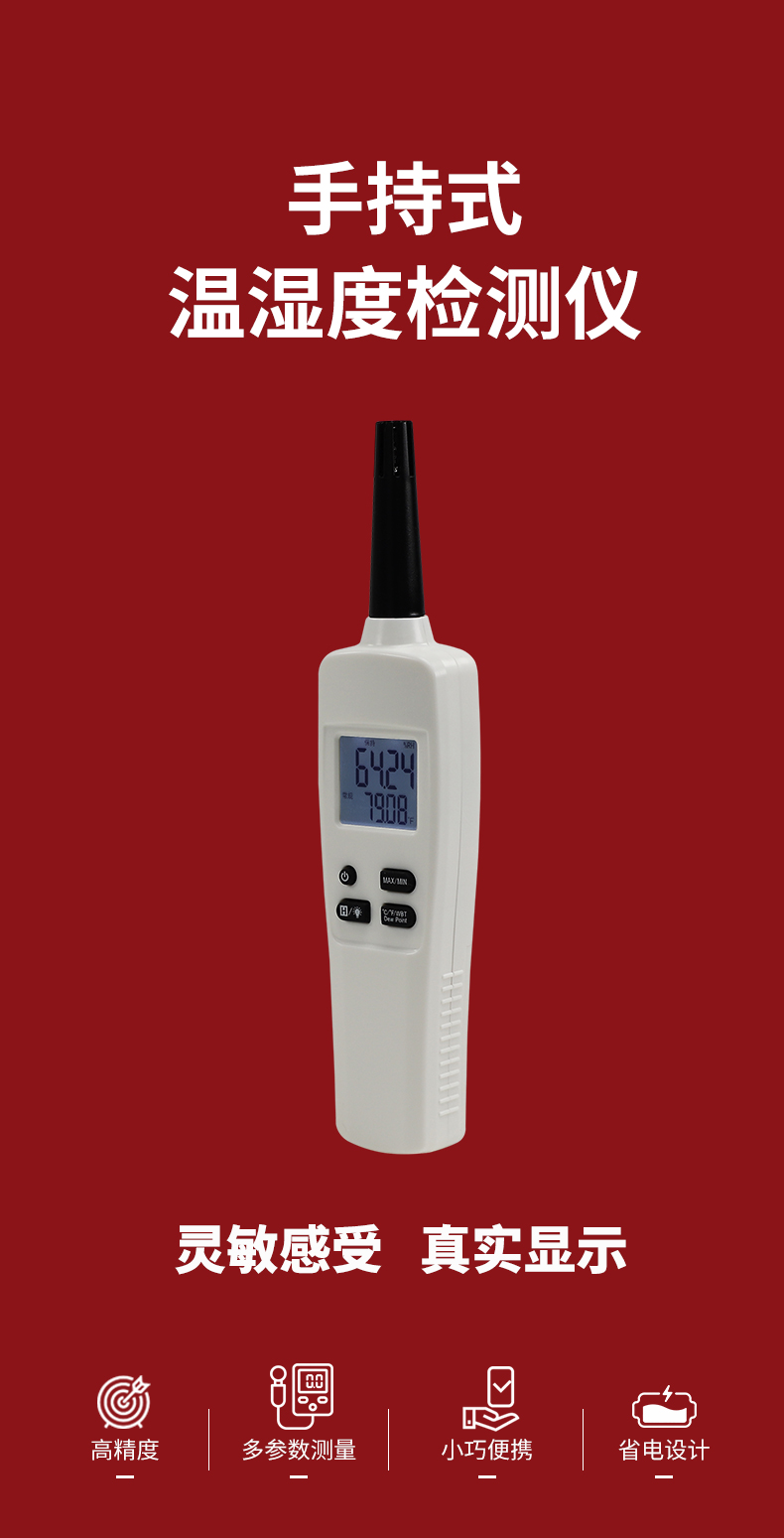 OHR-WS60系列手持式溫濕度檢測儀采用進口空氣溫度/濕度傳感器,響應時間快,具有空氣溫度、濕度、露點 溫度、濕球溫度測量功能,還具備最大值、最小值測量及數據保持功能。手持式高精度測量、小巧的外形便于攜 帶和使用,帶白色背光的雙顯示液晶屏可在黑暗環境中使用。